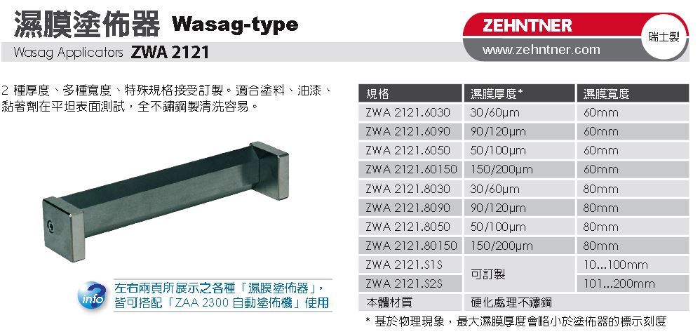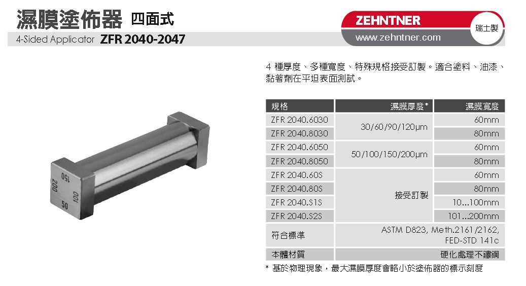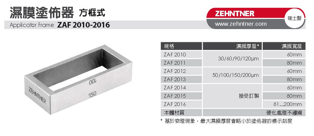 ZUA 2000 可調式/四面式/方框式 濕膜塗佈器