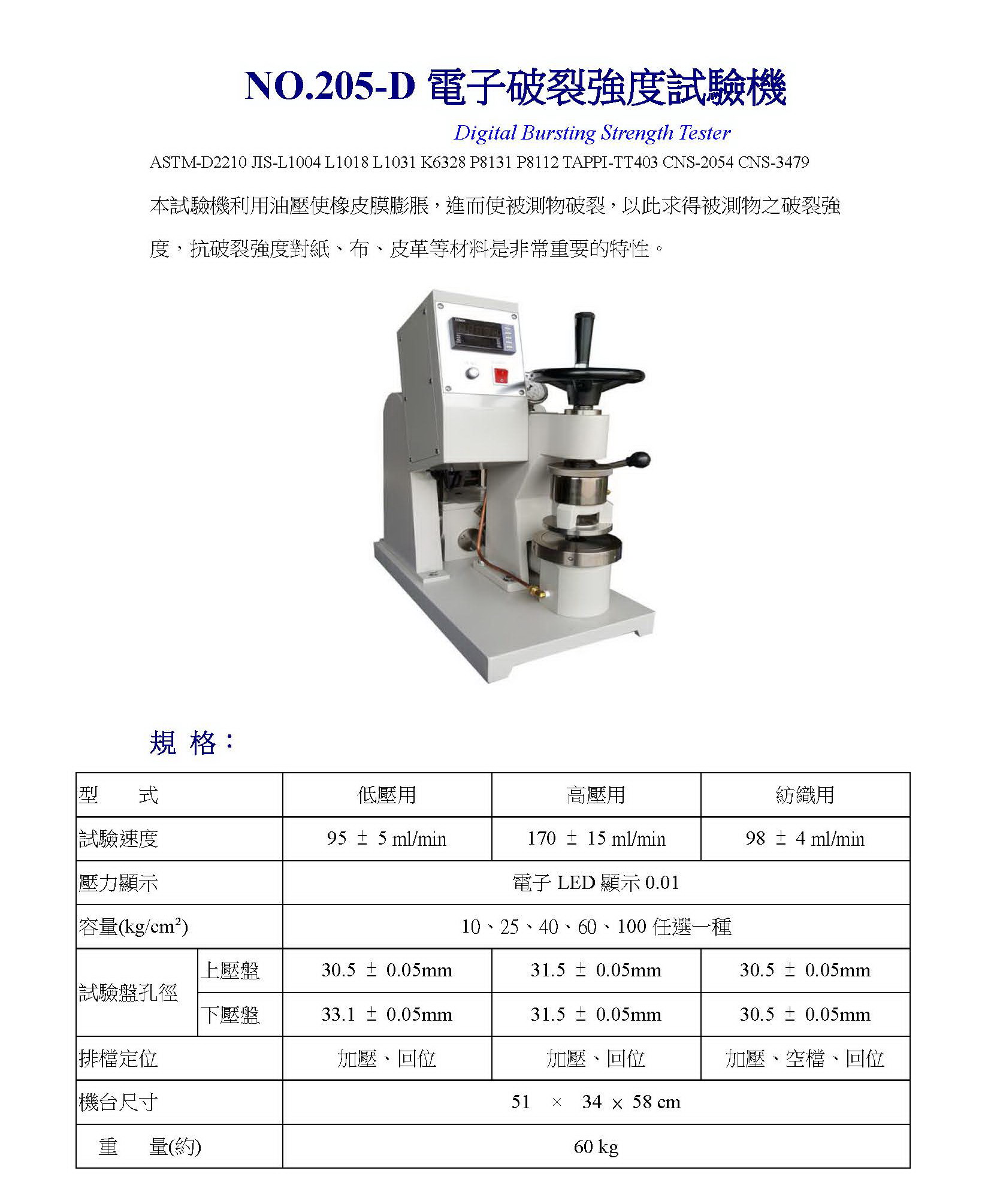 205/205-D 電子破裂強度試驗機