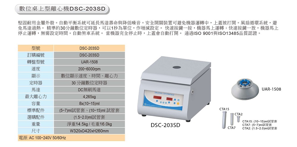 DSC-203SD 數位桌上型離心機