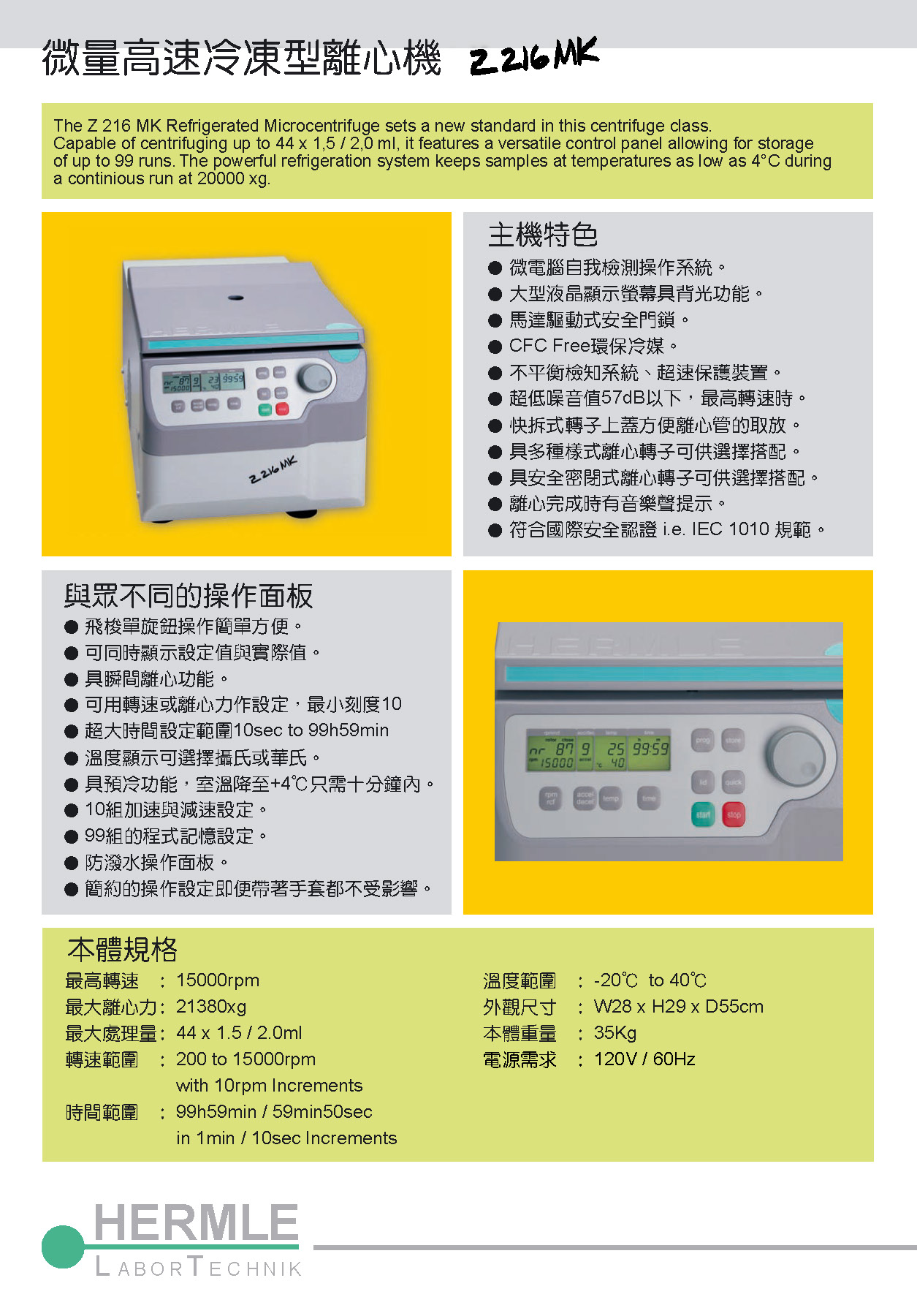德國Hermle Z216M/MK 微量高速型離心機/高速冷凍型離心機