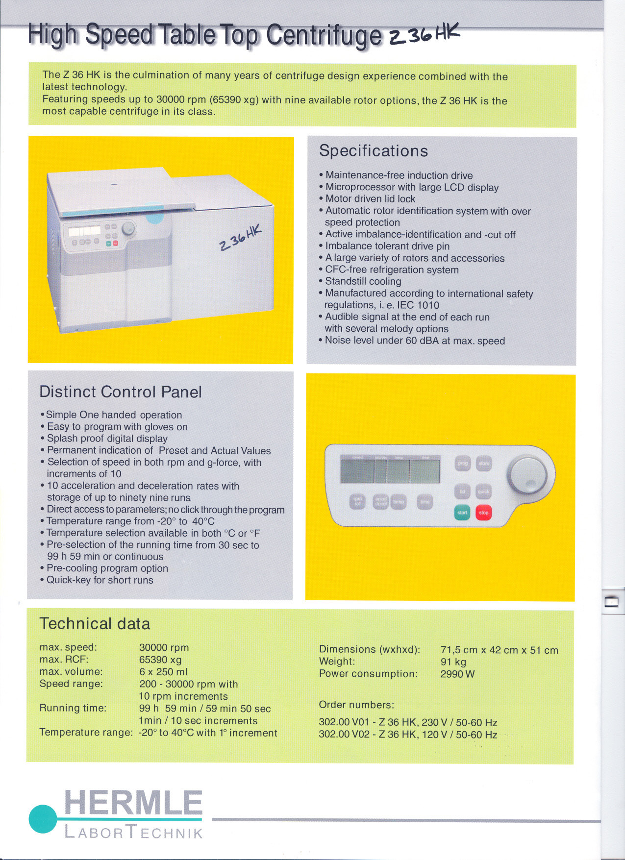 德國Hermle Z36HK 泛用超高速冷凍型離心機(30000rpm)