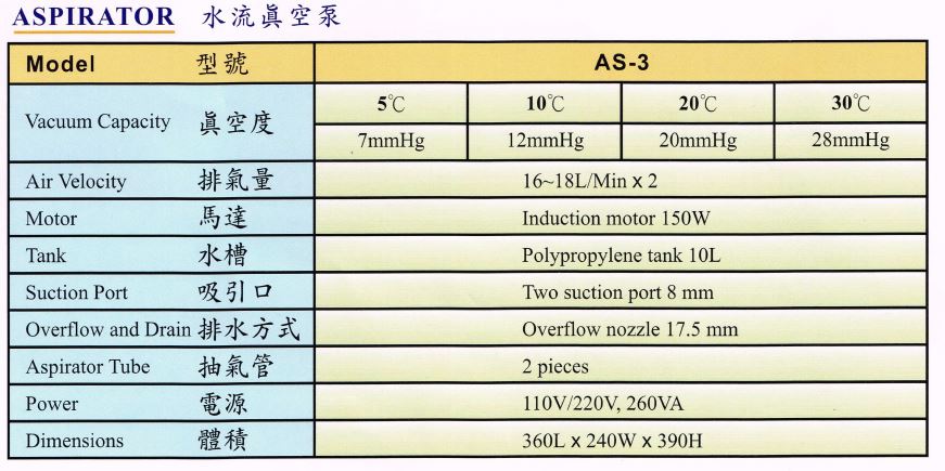 SIBATA WJ-20/AS-3 水流抽氣機系列