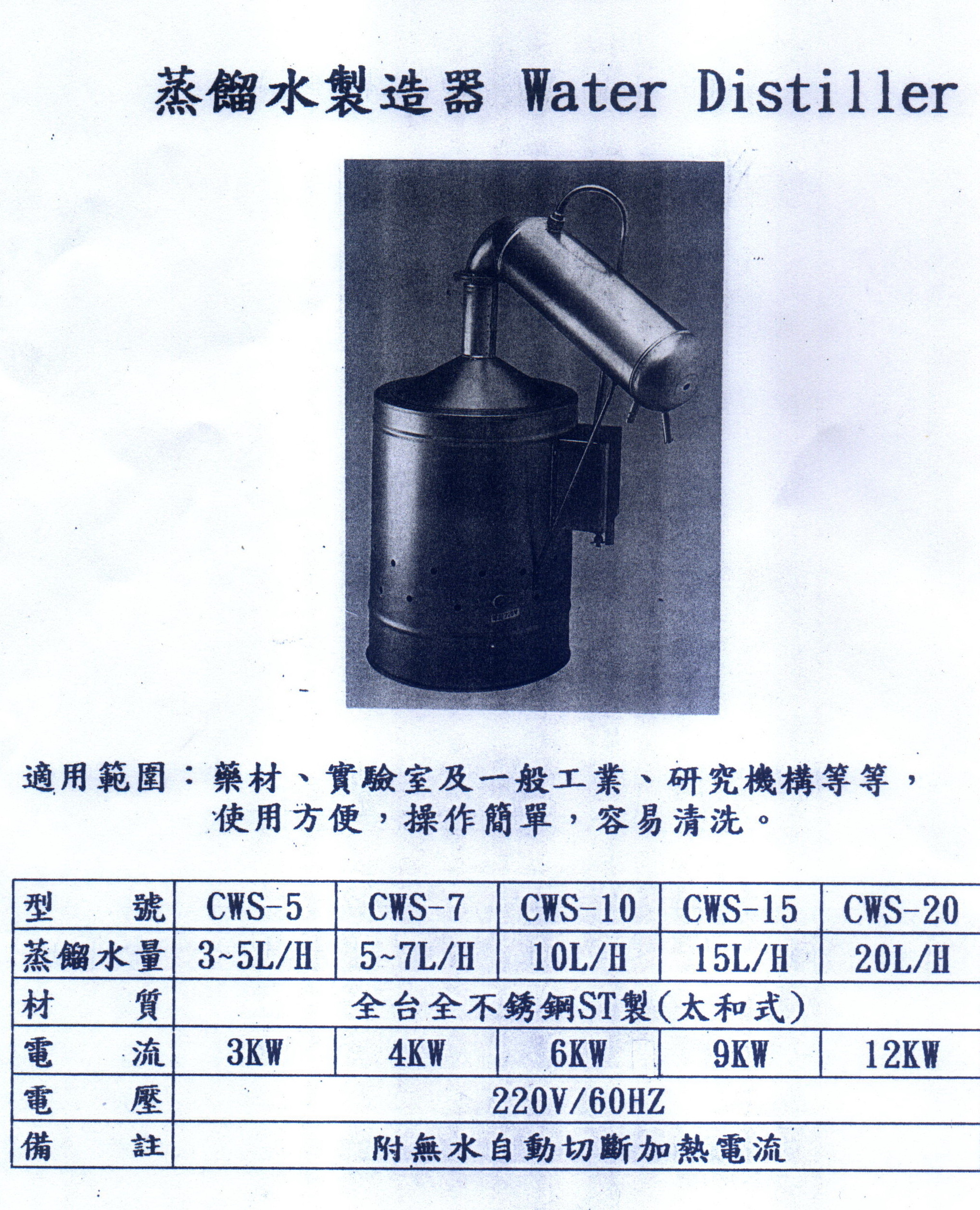 CWS-5/7/10/15/20 太和式蒸餾水製造器