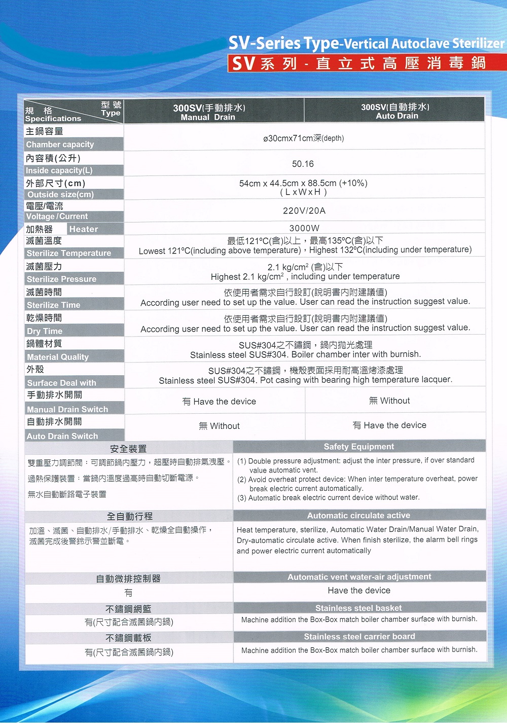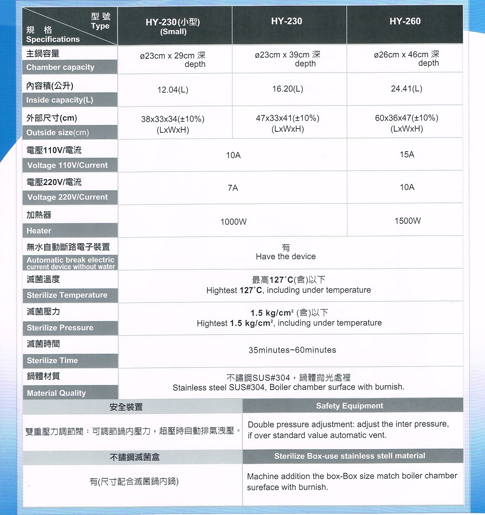 HY-230/260/300SV 桌上/落地型高壓滅菌消毒鍋