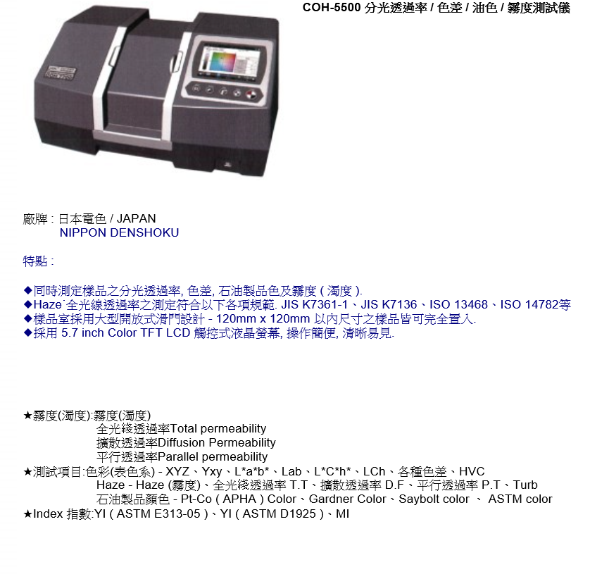 日本電色 COH-5500 分光透過率/色差/油色/霧度測試儀