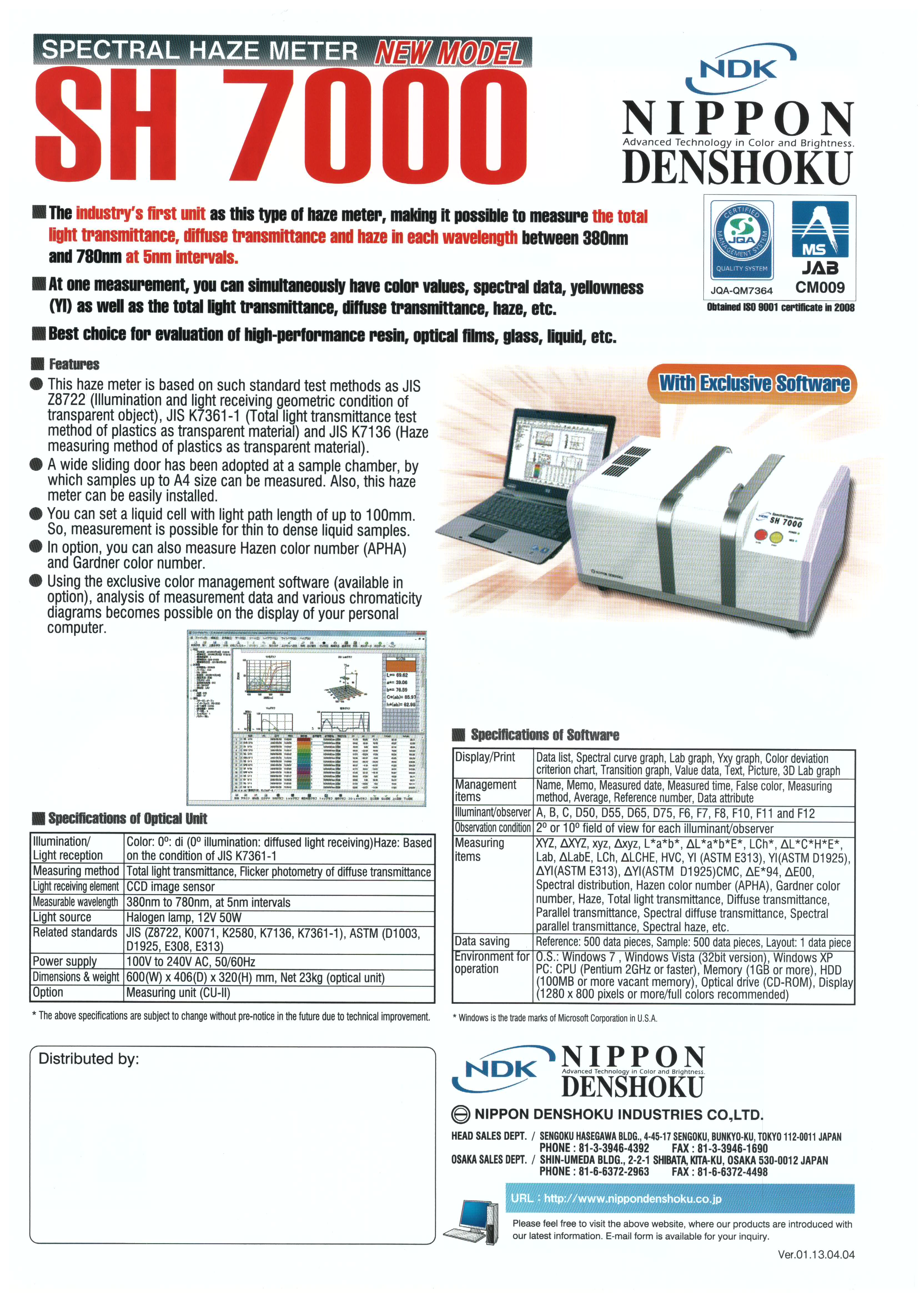 日本電色 SH-7000 分光色差及霧(濁)度測定儀
