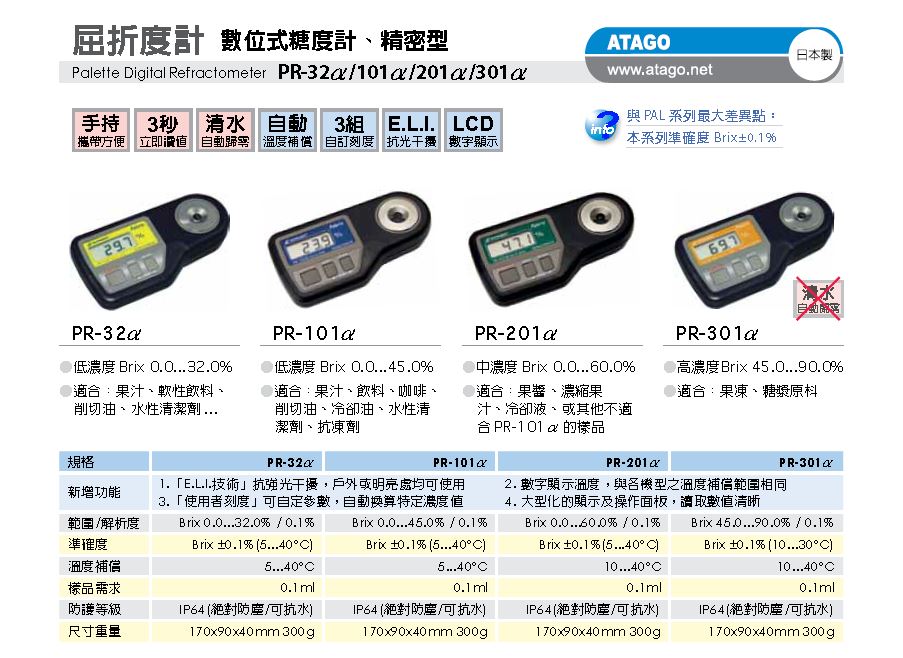 PAL/PR 數位式糖度/特殊刻度屈折計