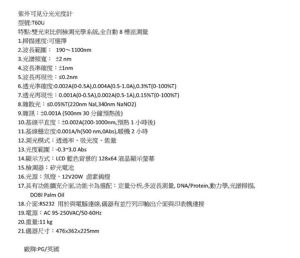 T60U 紫外可見光分光光度計