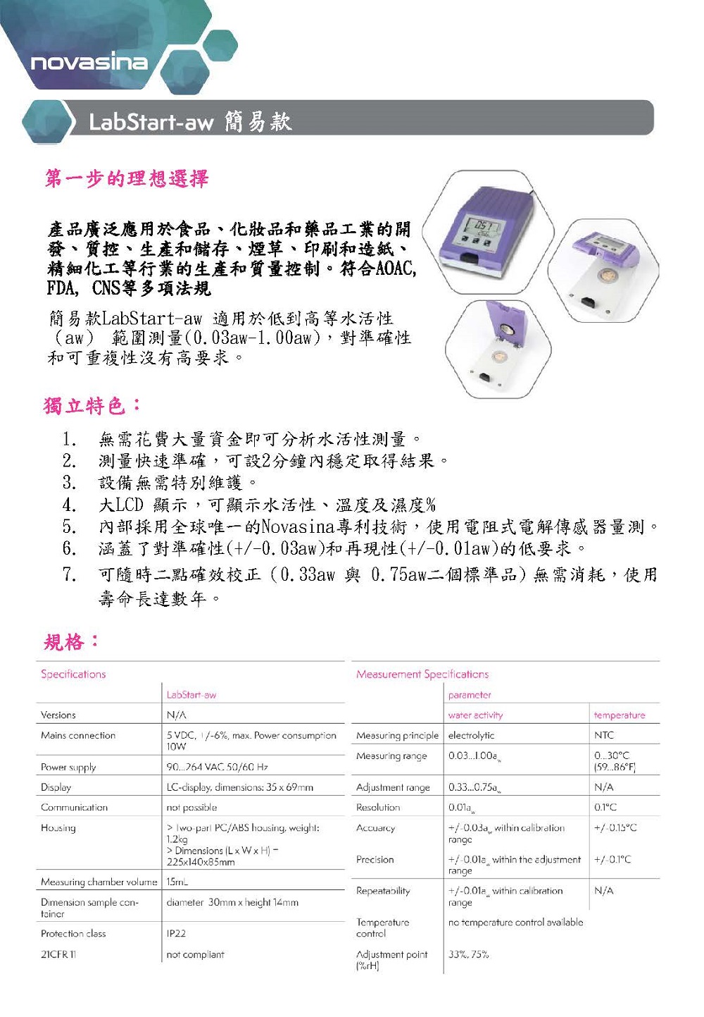 Novasina LabStart-aw 水活性測定分析儀