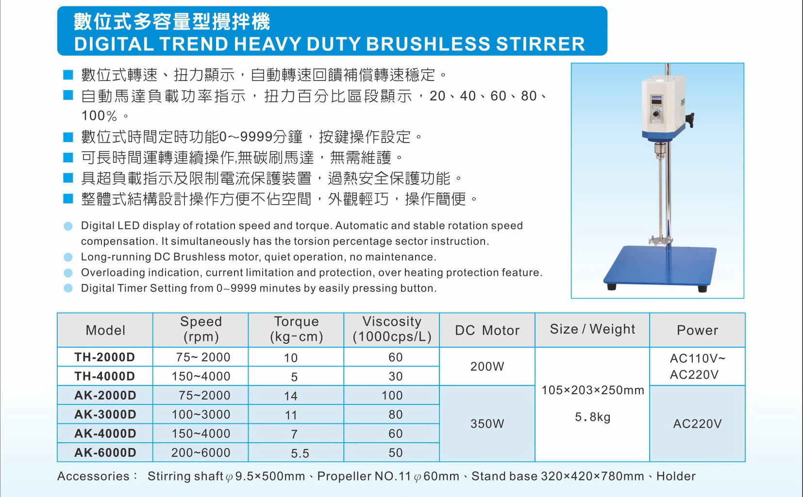 TH-D/AK-D 多容量高速無碳刷攪拌機